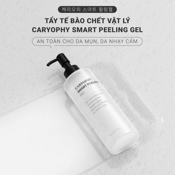 ✔️ Caryophy Smart Peeling Gel là sản phẩm tẩy tế bào chết vật lý với dung tích 250ml. Công thức dạng gel nước mỏng nhẹ, độ bám vào da tốt. Chỉ cần massage nhẹ vẫn có thể loại bỏ tế bào chết, bụi bẩn và bã nhờn từ mọi ngóc ngách trên khuôn mặt. Lỗ chân lông được sạch sâu và thông thoáng hơn, hạn chế nguy cơ bít tắc gây mụn.